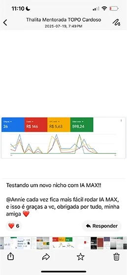 Pioneira no uso da IA Max em campanhas de afiliados — muito antes de virar modinha. Mais de R$ 800 mil faturados com marketing de afiliados. Mentora e fundadora da Prostart, já formei +100 alunos aplicando IA Max com ROI real, não só “print de clique”. Sou movida por estratégia e resultado: nada de receita de bolo, nada de teoria vazia. Aqui é campanha no ar, dado na mesa e lucro no bolso.